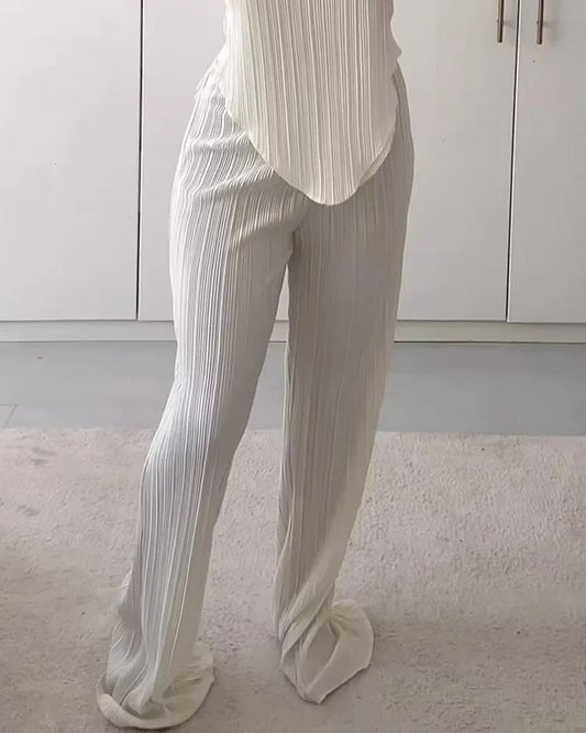 Thora | Effen kleur rits jumpsuit met wijde pijpen