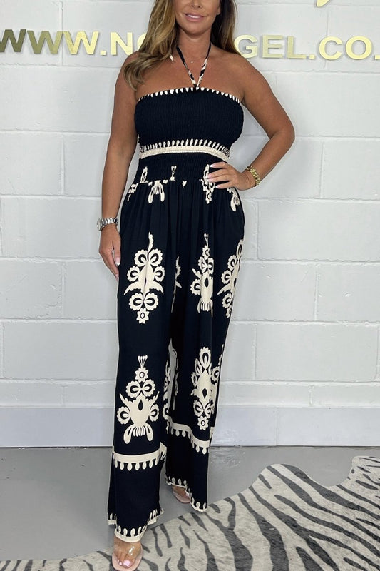 Zendy | Wijdvallende lange wijde pijpen jumpsuit