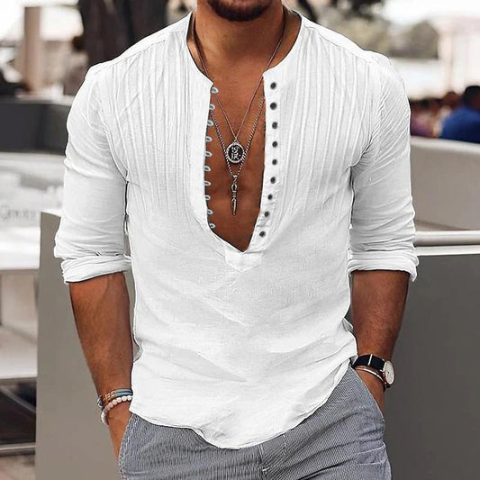 Dylan | Casual Geplooid Knoop Overhemd Met Lange Mouw