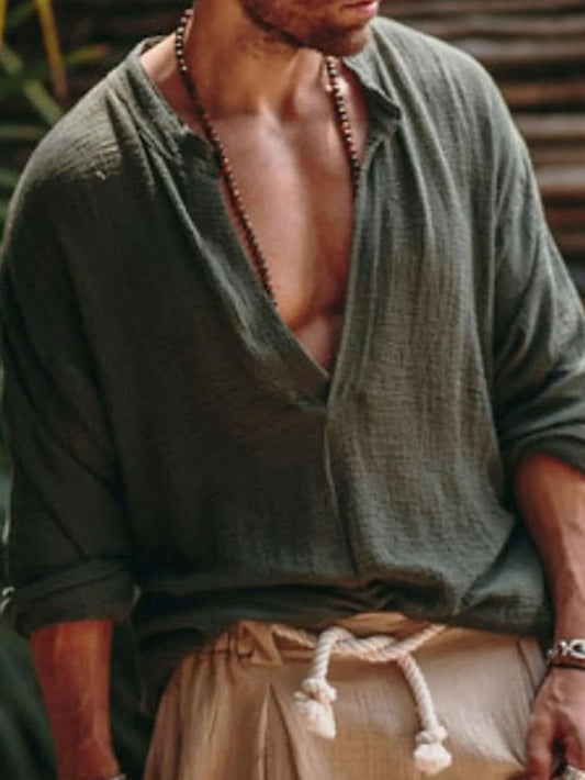 Roderick | Casual Lange Mouw V Hals Linnen Shirt