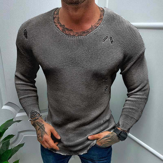 Rex | Casual Dunne Lange Mouwen Gescheurde Gebreide Trui
