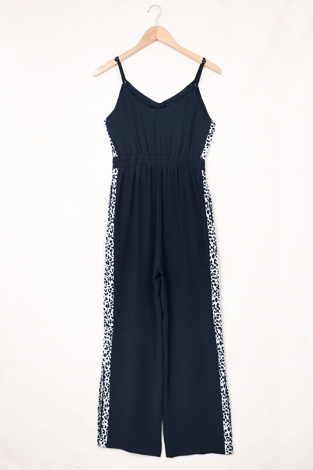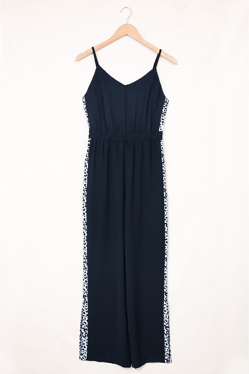 Stap zelfverzekerd en elegant de deur uit met de Patty Jumpsuit. Deze verfijnde jumpsuit voor dames heeft een flatterende v-hals tanktop, hoge taille en wijde pijpen, die zowel comfort als stijl bieden. Ontworpen met een elastische taille en stijlvolle luipaardaccenten, samen met praktische zijzakken en splitten aan de broekspijpen, combineert deze jumpsuit moderne trends met tijdloze elegantie.