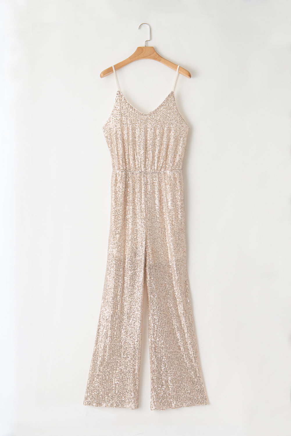 Rhoda | Goudkleurig lovertje V-hals mouwloos jumpsuit