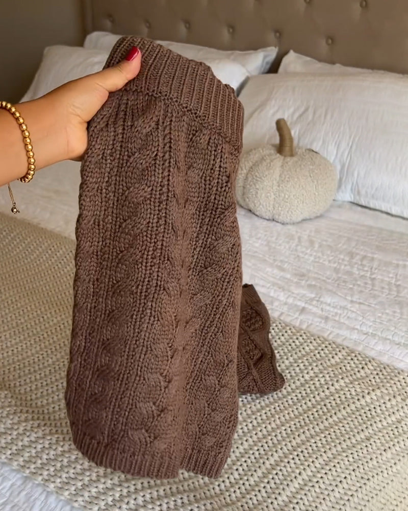 Chic en Trendy: Het stijlvolle kabelgebreide patroon voegt een eigentijdse touch toe, waardoor deze twee-delige set een modieuze keuze is voor vrouwen van alle leeftijden. Val op in de menigte met een look die moeiteloos knusheid combineert met trendy aantrekkingskracht.