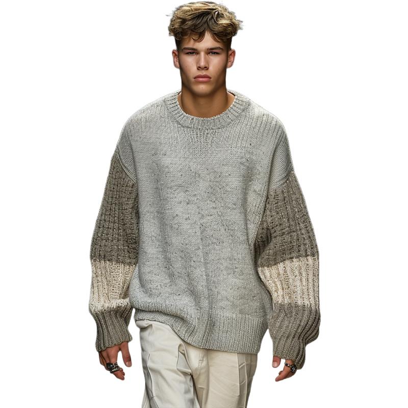 De Vernon Heren Fashion Kleurblok Ronde Hals Los Gebreid Lange Mouwen Pullover Trui is de perfecte mix van moderne stijl en ontspannen comfort. Met een gedurfd kleurblokontwerp voegt deze trui een dynamische twist toe aan de klassieke ronde hals silhouet, terwijl de losse pasvorm de hele dag door gemak biedt. Ideaal voor laagjes of om solo te dragen, tilt hij moeiteloos elke casual outfit naar een hoger niveau.